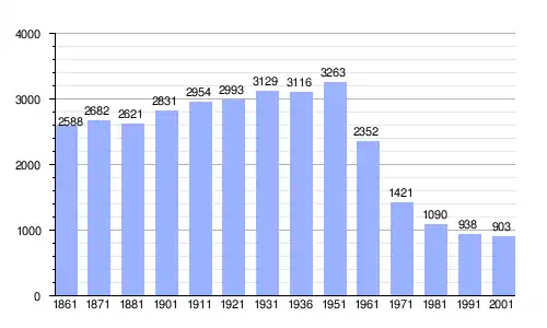 Gráfica de evolución demográfica de San Giovanni d'Asso entre 1861 y 2001 |