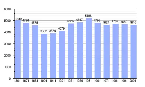 Gráfica de evolución demográfica de San Gregorio Magno entre 1861 y 2001 |
