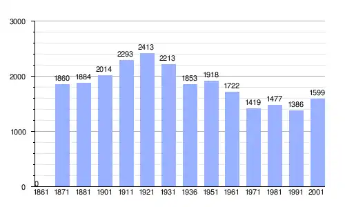 Gráfica de evolución demográfica de San Gregorio nelle Alpi entre 1861 y 2001 |