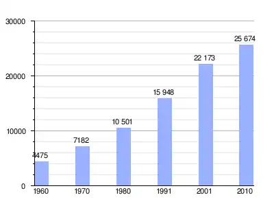 Gráfica de evolución demográfica de San Isidro entre 1960 y 2010 |