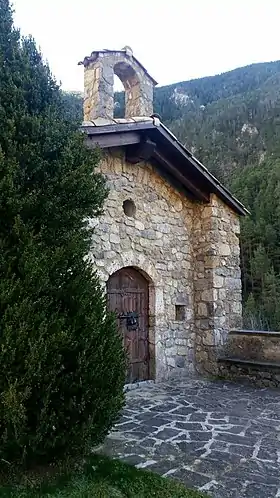 El portal primitivo, que estaba orientado hacia el sur, se encuentra tapiado. Sobre la puerta actual, rematada por un arco rebajado, que mira hacia Tuixent, se añadió un pequeño campanario durante la restauración.
