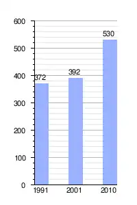 Gráfica de evolución demográfica de San Javier entre 1991 y 2010 |