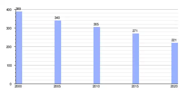 Gráfica de evolución demográfica de Lorenzana entre 2000 y 2020 |
