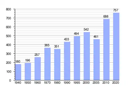 Población de los censos y conteos del Instituto Nacional de Estadística y Geografía (INEGI).[8] |