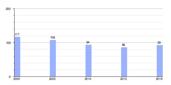 Gráfica de evolución demográfica de Barredo entre 2000 y 2019 |