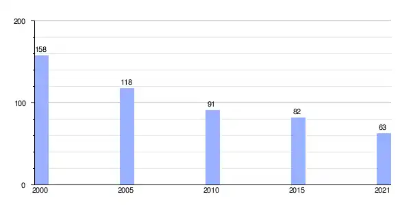 Gráfica de evolución demográfica de Lózara (parroquia) entre 2000 y 2021 |