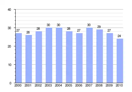 Población de derecho (2000-2010) según los censos de población del INE a 1 de enero de cada año.[1]