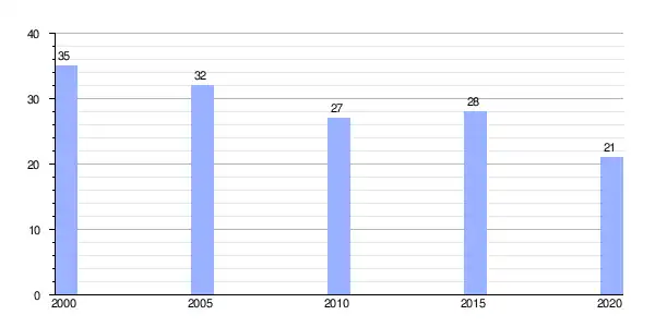 Gráfica de evolución demográfica de Bardaos entre 2000 y 2020 |