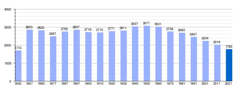 Población de derecho (1842-1991, excepto 1857 y 1860 que es población de hecho) o población residente (2001-2011) según los Censos de Población desde 1842. Población según el padrón municipal de 2021 del INE. |