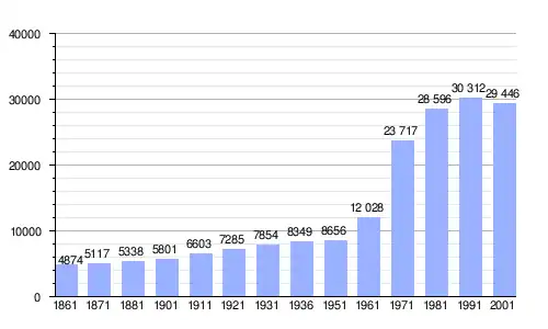 Gráfica de evolución demográfica de San Lazzaro di Savena entre 1861 y 2001
