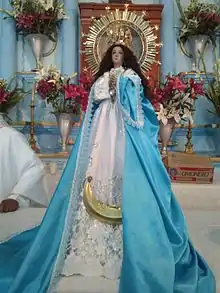 En 2010, al ver el deterioro de esta virgen, fue creada una virgen peregrina que es una copia exacta de esta virgen original, la cual se encarga de hacer los recorridos y peregrinaciones que antes hacía la virgen original. La tradición local afirma que llegó en una caja a lomos de un burro del que se desconocía de donde venía. Los pobladores decidieron abrir la caja y se encontraron con esta imagen, a la que llamaron de la Purísima Concepción. Se le construyó un templo en su honor.