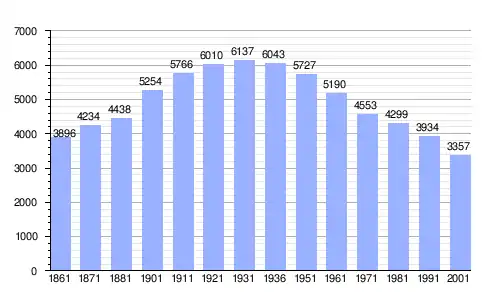 Gráfica de evolución demográfica de San Lorenzo entre 1861 y 2001 |