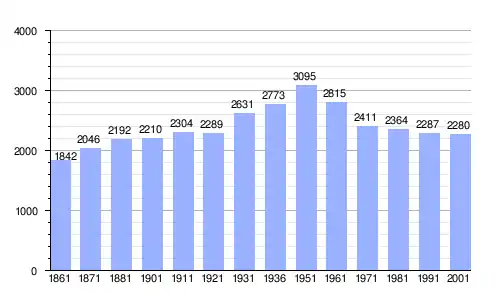 Gráfica de evolución demográfica de San Lorenzo Maggiore entre 1861 y 2001 |