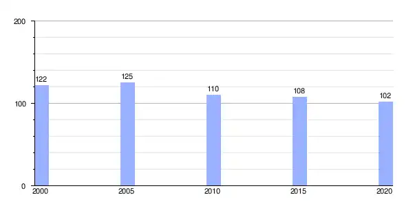 Gráfica de evolución demográfica de Aguiar entre 2000 y 2020 |