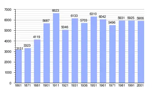 Gráfica de evolución demográfica de San Lucido entre 1861 y 2001 |