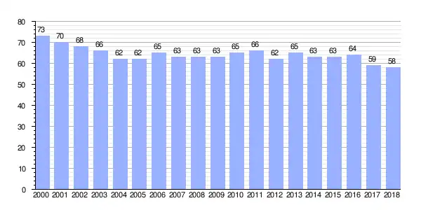 Gráfica de evolución demográfica de San Mamede entre 2000 y 2018 |