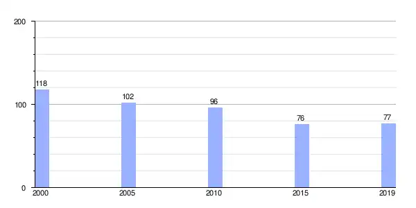 Gráfica de evolución demográfica de Losada entre 2000 y 2019