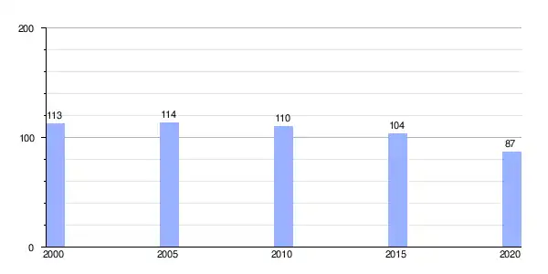 Gráfica de evolución demográfica de Lousada (parroquia) entre 2000 y 2020 |