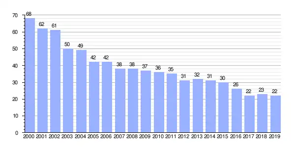 Gráfica de evolución demográfica de San Mamede entre 2000 y 2019 |