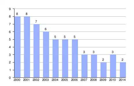 Población de derecho (2000-2010) según los censos de población del INE a 1 de enero de cada año.[1] |