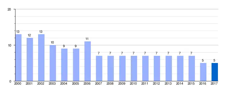 Gráfica de evolución demográfica de San Martín Zar entre 2000 y 2017 |