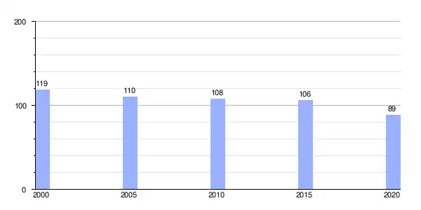 Gráfica de evolución demográfica de Ferreiros entre 2000 y 2020 |