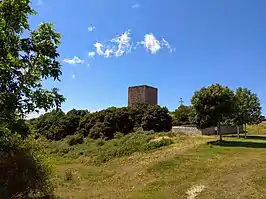 Más reciente es la declaración de Monumento Protegido para torre medieval de San Martín de Hoyos que se sitúa un poco apartada hacia el oeste, junto al cementerio. Se construyó posiblemente avanzado el siglo XIV con una función de vigía y control del paso hacia Campoo, que en nada extraña a juzgar de su estratégica ubicación. Consta de un volumen cúbico único, con predominio absoluto del muro, que es de aparejo de mampostería, al que se abren la portada en el lado este, una aspillera en el norte y ventanas de mayor desarrollo al sur y a poniente, con características ojivales en el apuntamiento de los arcos y en la distribución interna del espacio. Su estado de conservación no es todo lo deseable que cabría esperar, haciéndose necesarias tareas de consolidación y protección que detengan el amenazante desplome.
