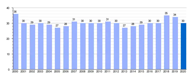 Gráfica de evolución demográfica de San Martín de Perapertú entre 2000 y 2020 |
