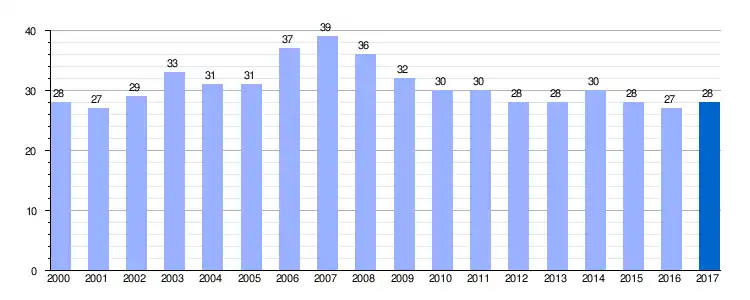 Gráfica de evolución demográfica de San Martín de Valdetuéjar entre 2000 y 2017 |