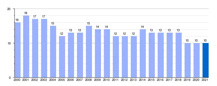 Gráfica de evolución demográfica de San Martín del Monte entre 2000 y 2021 |