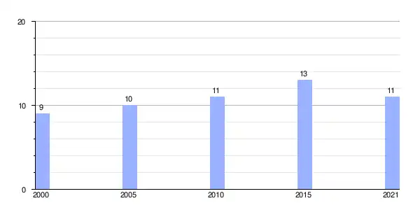 Gráfica de evolución demográfica de San Martiño entre 2000 y 2021 |