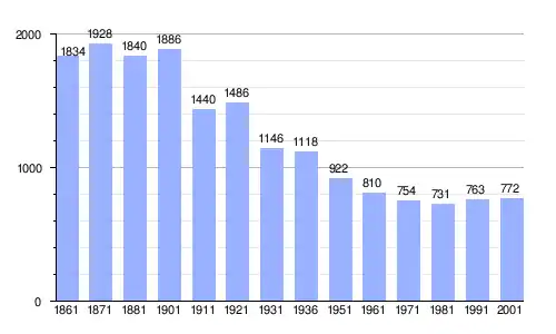 Gráfica de evolución demográfica de San Martino Canavese entre 1861 y 2001 |