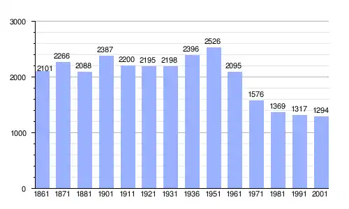 Gráfica de evolución demográfica de San Martino di Finita entre 1861 y 2001 |