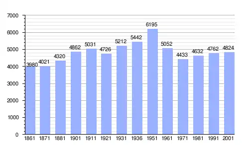 Gráfica de evolución demográfica de San Martino in Pensilis entre 1861 y 2001 |