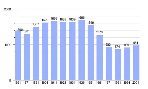 Gráfica de evolución demográfica de San Martino sulla Marrucina entre 1861 y 2001 |
