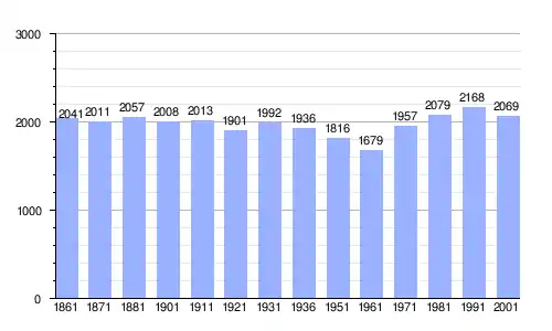 Gráfica de evolución demográfica de San Michele Mondovì entre 1861 y 2001 |