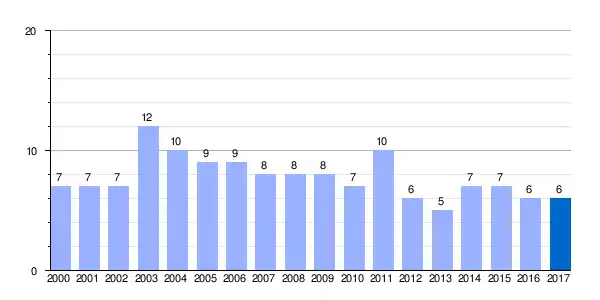 Gráfica de evolución demográfica de San Miguel[2] entre 2000 y 2017 |