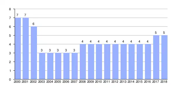 Gráfica de evolución demográfica de San Miguel entre 2000 y 2018 |