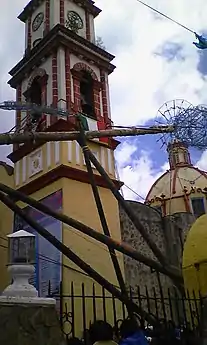 Para el día siguiente se levantan 6 castillos pirotécnicos más, en el atrio de la parroquia y más tarde, los jóvenes solteros de los lados "Aire" y "Río" de la población realizan una levanta de troncos de oyamel de una altura aproximada de 30 y 40 metros de altura, llamados "latas" o "murillos" cargados de pirotecnia. El lado que levanta el castillo de lata primero, es el lado que quema su pirotecnia primero.