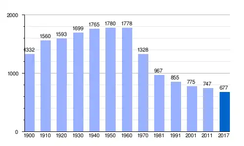 Población de derecho (1900-1991) o población residente (2001 y 2011) según los censos de población del INE.[7][8] Población según el padrón municipal de 2017 del INE. |