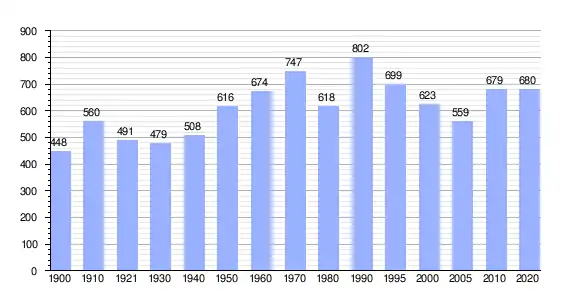 En 2020 registró una población de 680 personas, lo que corresponde al 1.48 % de la población municipal.[12] De los cuales 317 son hombres y 363 son mujeres.[12] Tiene 169 viviendas particulares habitadas.[12]