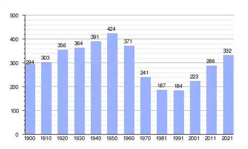 Gráfica de evolución demográfica de San Morales entre 1900 y 2021 |