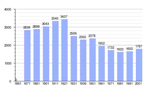 Gráfica de evolución demográfica de San Nazario entre 1861 y 2001 |