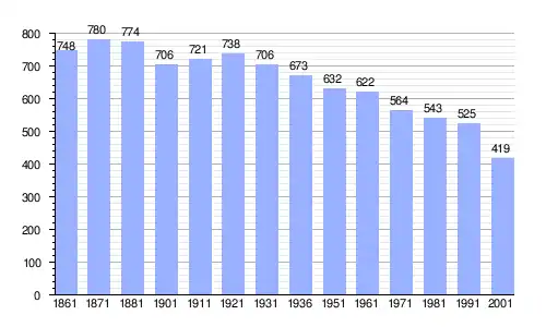 Gráfica de evolución demográfica de San Nazzaro Val Cavargna entre 1861 y 2001 |
