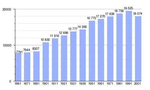 Gráfica de evolución demográfica de San Nicandro Garganico entre 1861 y 2001 |