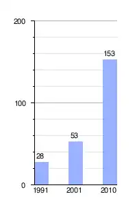 Gráfica de evolución demográfica de San Nicolás entre 1991 y 2010 |
