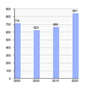 Gráfica de evolución demográfica de San Nicolás Tolentino entre 2000 y 2020 |