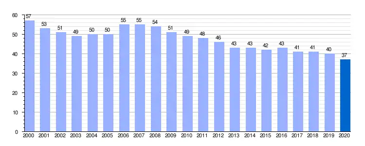 Gráfica de evolución demográfica de San Nicolás del Real Camino entre 2000 y 2020 |
