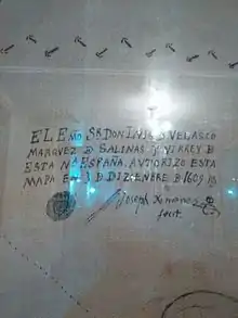 ![]() Sello del Virrey Luis de Velasco en el mapa de San Pablo Atlazalpan |