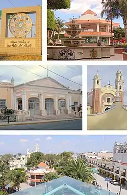 ![]() De arriba abajo de izquierda a derecha: Plato de talavera, Plaza de Armas, Museo Tlanechticalli, Parroquia de San Pablo Apóstol y Panorámica de la ciudad.